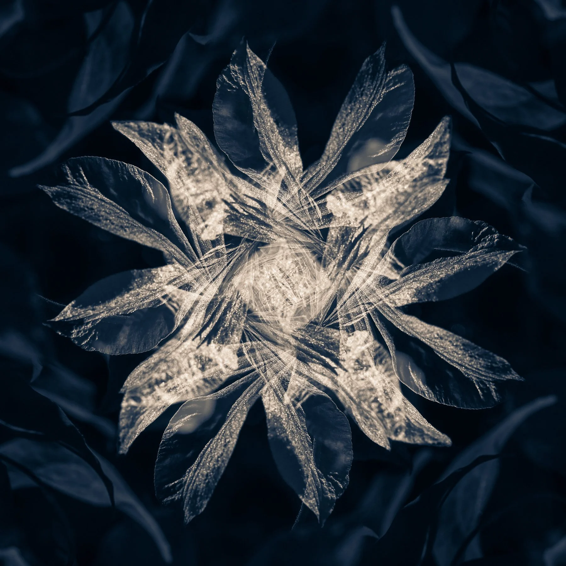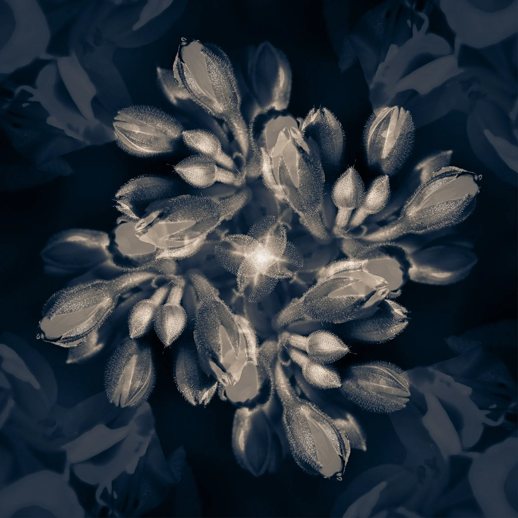 This project grew from early mornings spent photographing in gardens throughout Colorado, Pennsylvania, and California. Drawn to the quiet beauty of botanical forms, I use light, focus, and in-camera multiple exposures to reveal the subtle architecture within flowers. The resulting images hover between realism and abstraction, inviting viewers into a contemplative space where form becomes gesture and nature becomes luminous. Processed with soft split tones to heighten their dreamlike quality and printed on Hahnemühle Photo Rag Baryta, the work reflects my interest in how small moments in nature can open into something expansive, emotional, and timeless.